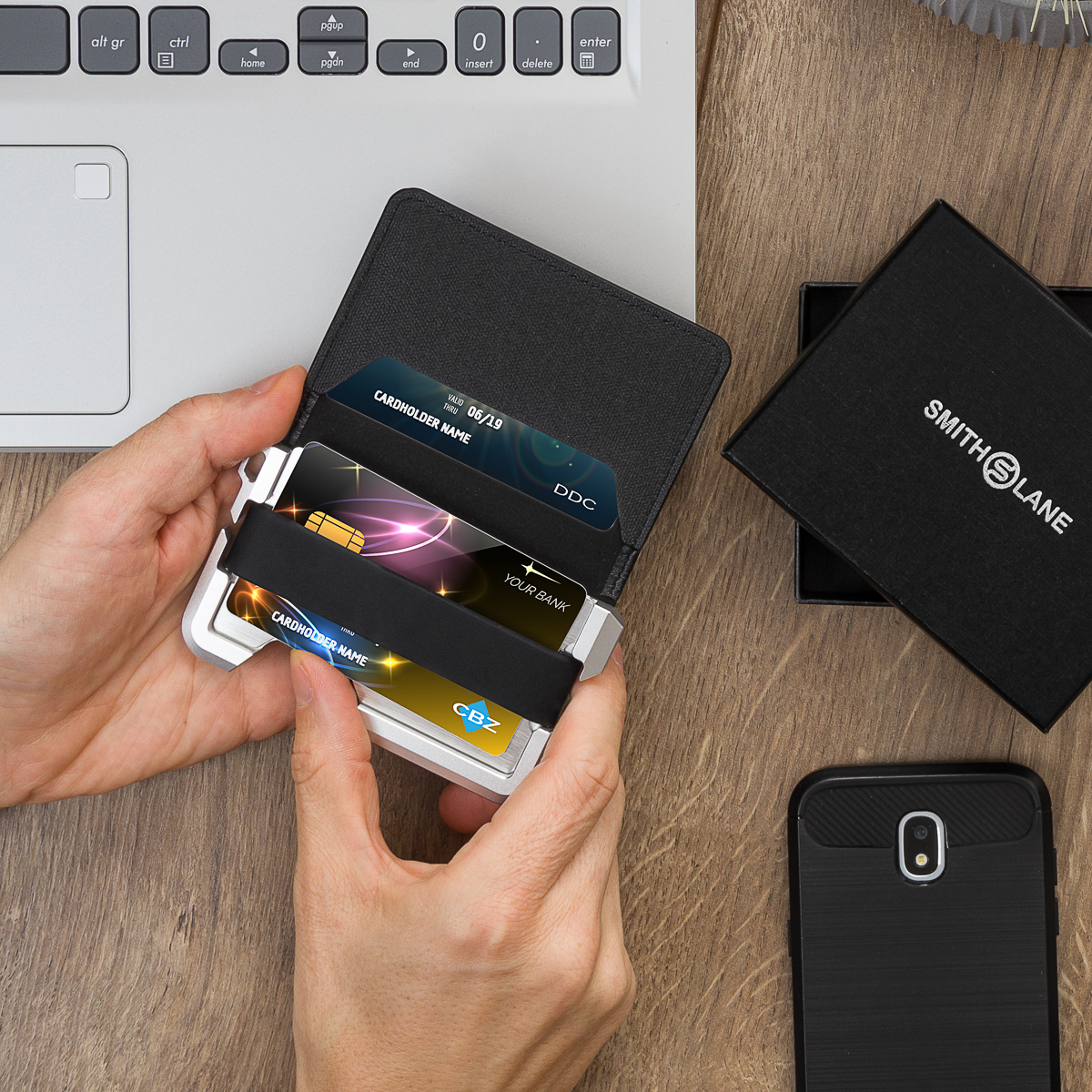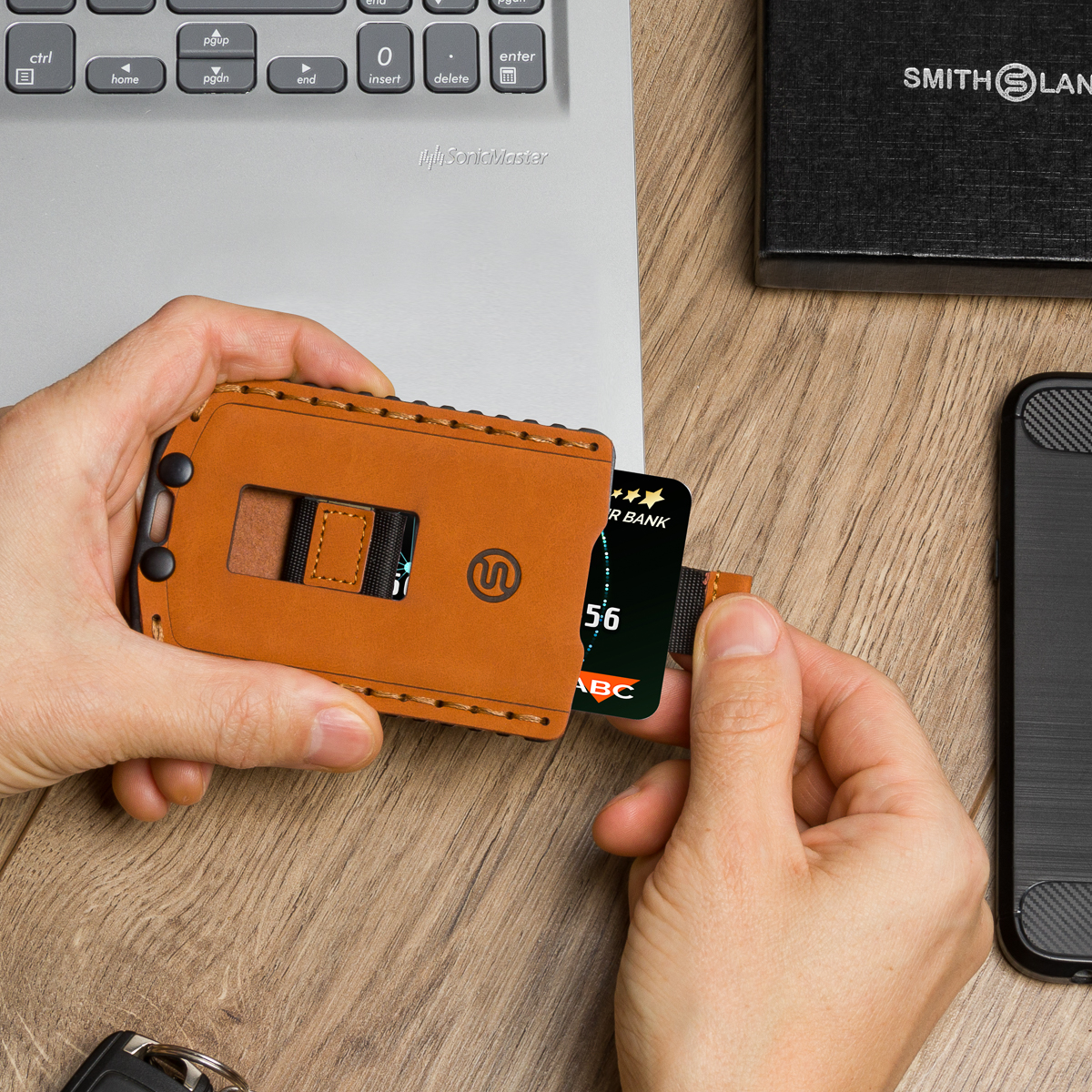 Doskonałym uzupełnieniem prezentacji są zdjęcia aranżacyjne i typu lifestyle, które pozwalają pokazać styl i funkcjonalność portfeli. Aranżacje nie muszą być skomplikowane, aby zaprezentować odpowiednio produkt.